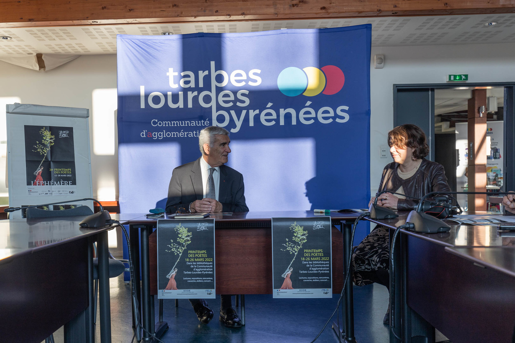 Gérard Trémège, Président de la Communauté d'agglomération Tarbes-Lourdes-Pyrénées, a présenté ce lundi 7 mars, accompagné de Violaine Barde, responsable du réseau de lecture publique de l'agglo TLP, l'opération "Printemps des Poètes" qui aura pour thème cette année "l'éphémère". Cette manifestation nationale sera reprise au sein de nos bibliothèques du 18 au 26 mars, avec un ensemble d'animations gratuites qui rayonnera sur la totalité du réseau de lecture publique.