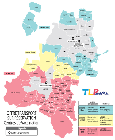 La Communauté d’agglomération Tarbes-Lourdes-Pyrénées propose une offre de transport pour se rendre vers les centres de vaccination du territoire :