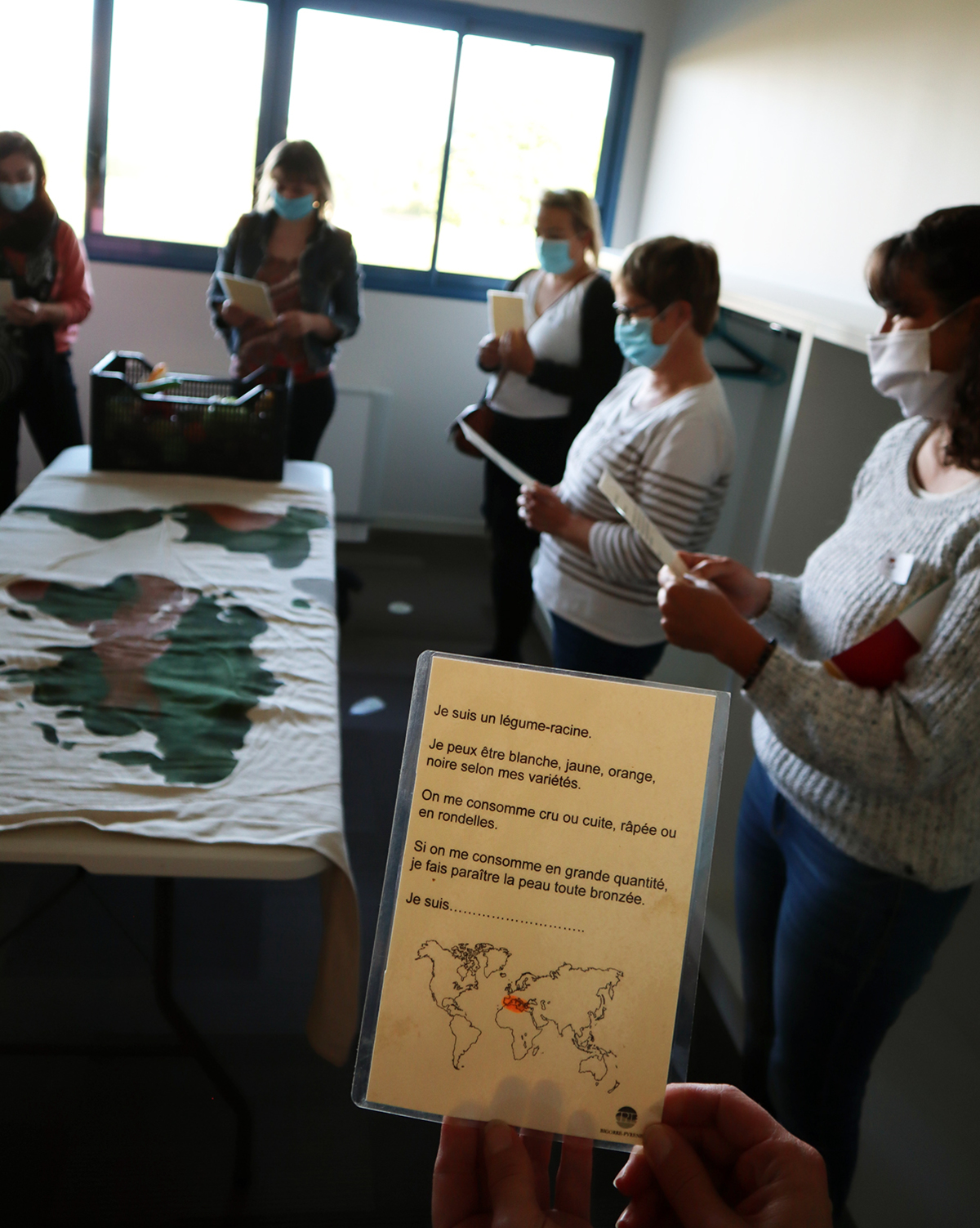 Des ateliers d'une quinzaine de minutes ont plongé les participants dans le vif du sujet. Ont été proposés : jeu de cartographie des origines des céréales, fruits et légumes, atelier de création de beurre, photo langage à partir des peintures d’Arcimboldo, atelier anti-gaspillage réalisé par le SYMAT et choix du nom de l'équipe et du capitaine.