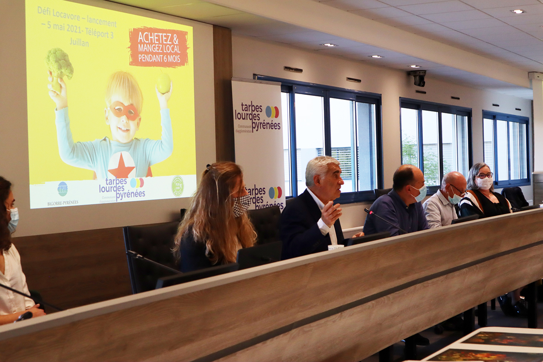 En présence de Gérard Trémège, Président de la Communauté d’agglomération Tarbes-Lourdes-Pyrénées, Jean-Claude Piron, Vice-Président en charge de l’environnement et de la transition écologique, André Laborde, Vice-Président en charge des espaces naturels et Cécile Prévost, conseillère communautaire déléguée au PCAET, le top départ du Défi Locavore a été donné.