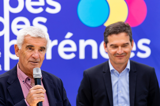 Sous un soleil radieux, sur le sommet, Gérard Trémège, Président de la Communauté d'agglomération Tarbes-Lourdes-Pyrénées, Thierry Lavit, Maire de Lourdes et Bruno Vinualès, Conseiller départemental, ainsi que les élus et les partenaires du projet, ont inauguré la nouvelle offre du Pic du Jer vendredi 24 juillet 2020.
