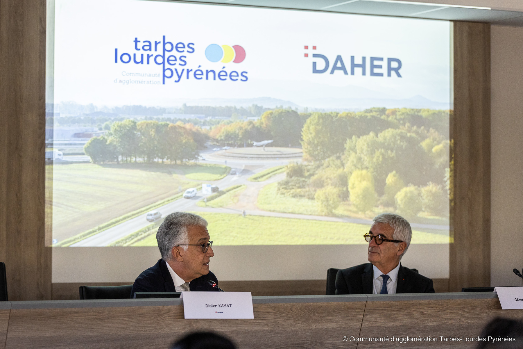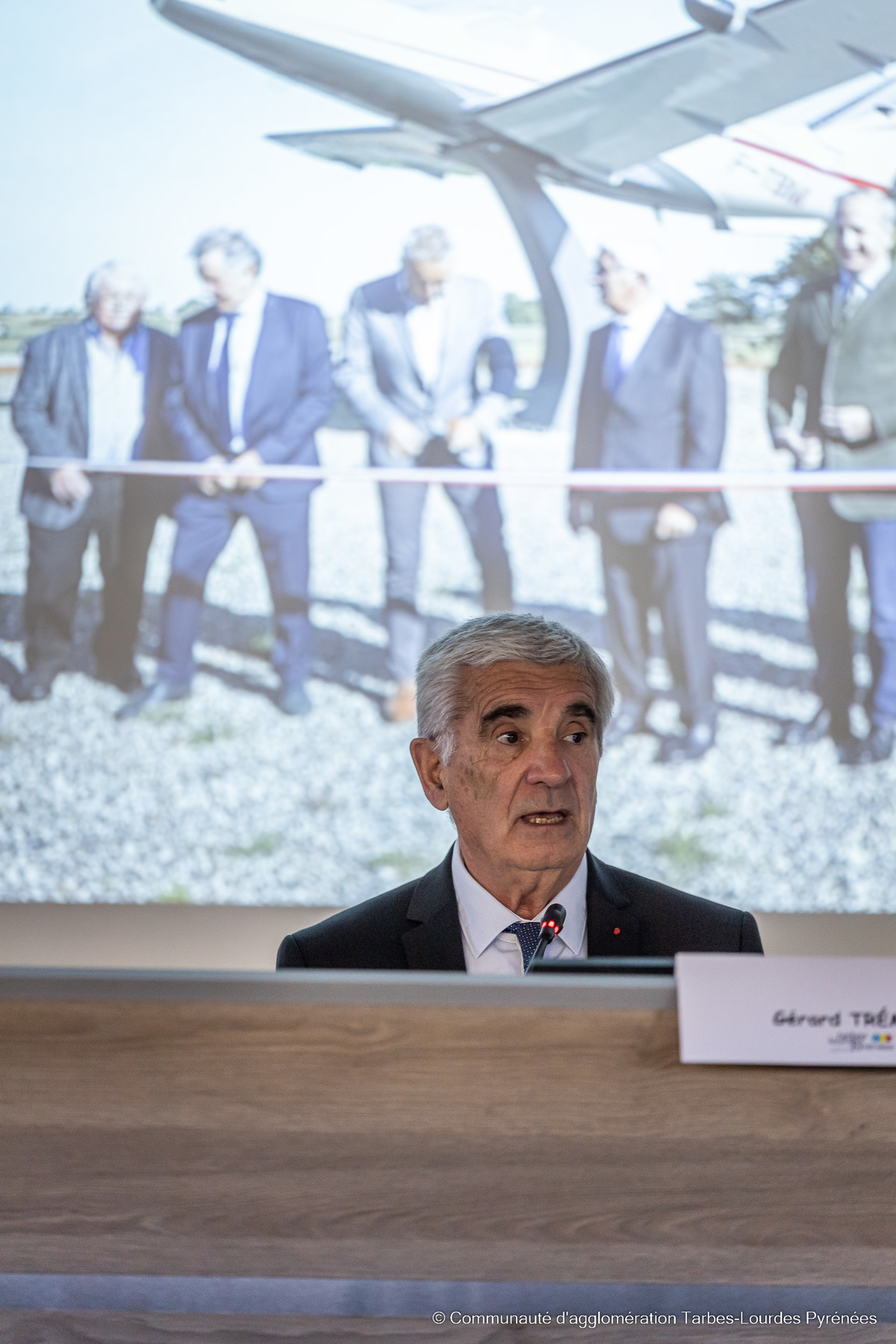 La traditionnelle coupe de ruban a été suivie des prises de parole de Monsieur Gérard Trémège, Président de la Communauté d'agglomération Tarbes-Lourdes-Pyrénées, de Monsieur Didier Kayat, Directeur Général de Daher, et de Jean Salomon, Préfet des Hautes-Pyrénées.