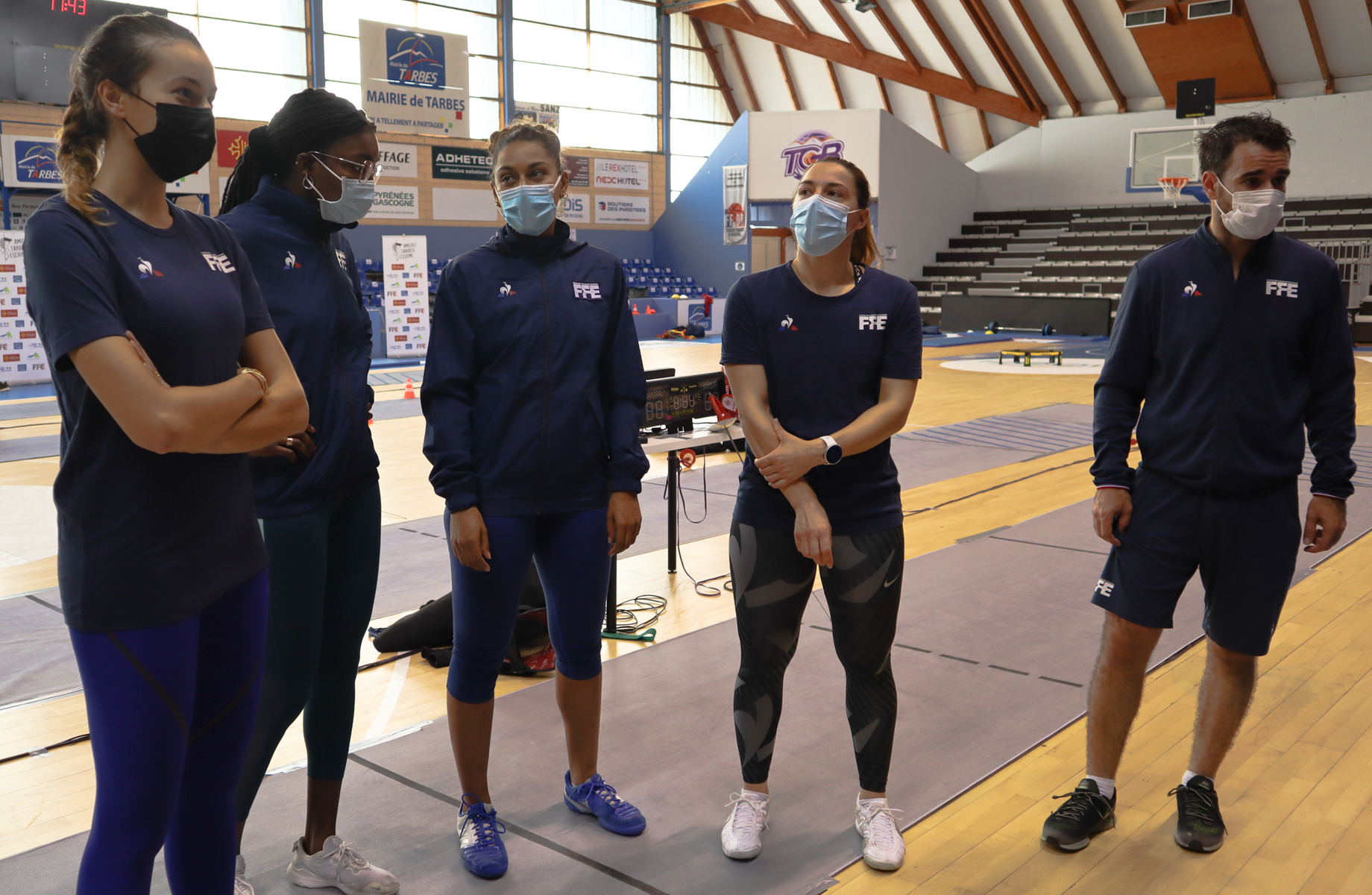 Mardi 29 juin 2021, Elisabeth Brunet, conseillère communautaire et élue au sport à la Mairie de Tarbes, Thomas Da Costa, élu dédié aux relations avec les associations sportives, la Fédération Française d'Escrime, les représentants de l'INSEP et les responsables des infrastructures sportives de l'agglo sont allés à leur rencontre. Un moment enclin à la convivialité et au partage pour les tricolores actuellement au stage au quai de l'Adour entourées de leurs entraîneurs et staff.