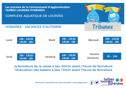Pendant les vacances scolaires, les horaires du Complexe aquatique de Lourdes et du Centre Nautique Paul Boyrie changent.