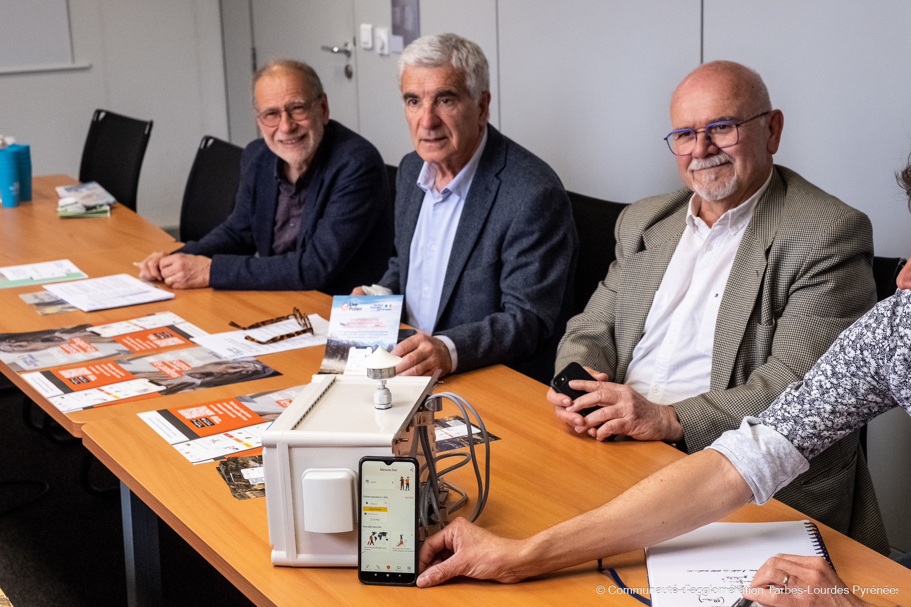 Ce mercredi 22 mars 2023, Gérard Trémège, Président de la Communauté d'agglomération Tarbes-Lourdes-Pyrénées, a présenté, en présence de Docteur Jean Robert CASTEL, Président du Conseil Départemental de l'Ordre des Médecins 65, et du Docteur Gayraud, allergologue des Hautes-Pyrénées, le nouveau dispositif "LivePollen" permettant de mesurer en temps réel la concentration en pollens dans l'air sur notre territoire.