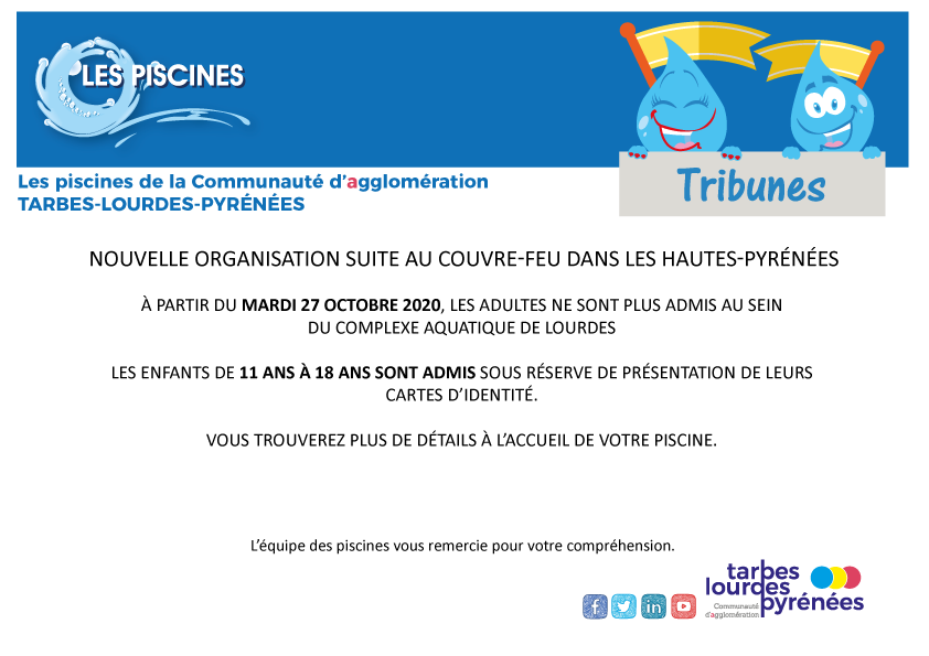 A partir du mardi 27 octobre 2020, au sein du Complexe aquatique de Lourdes :