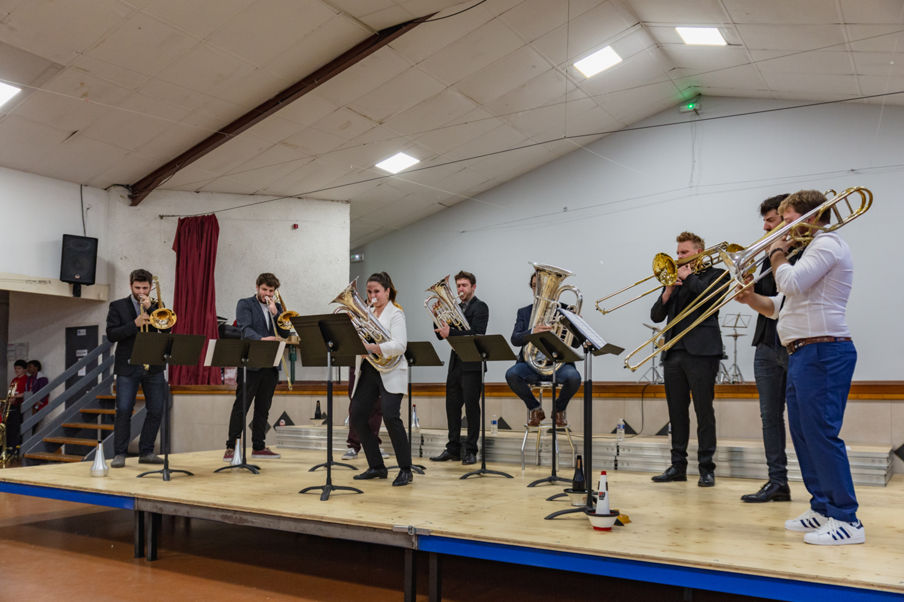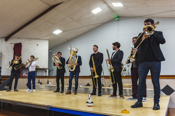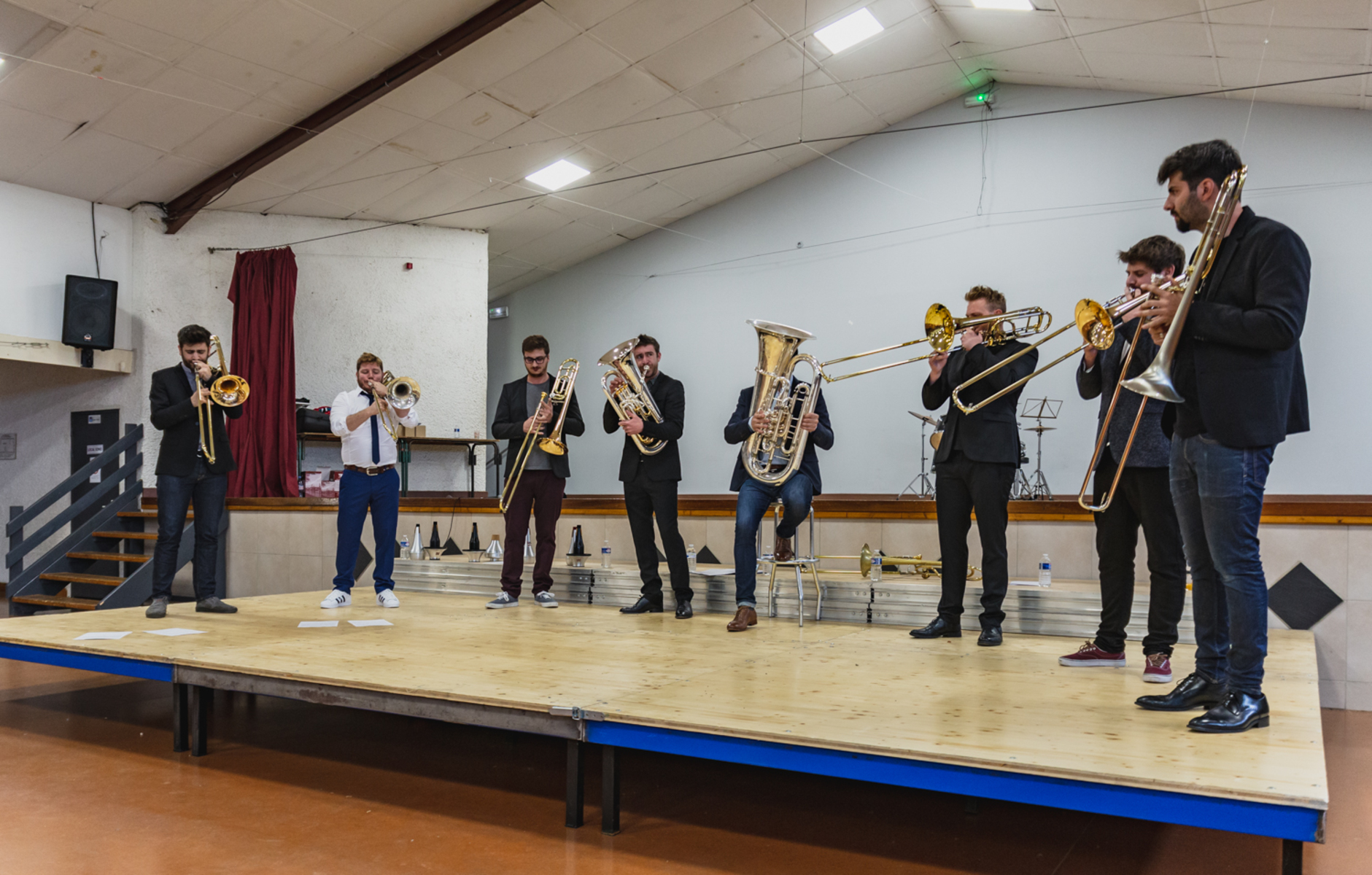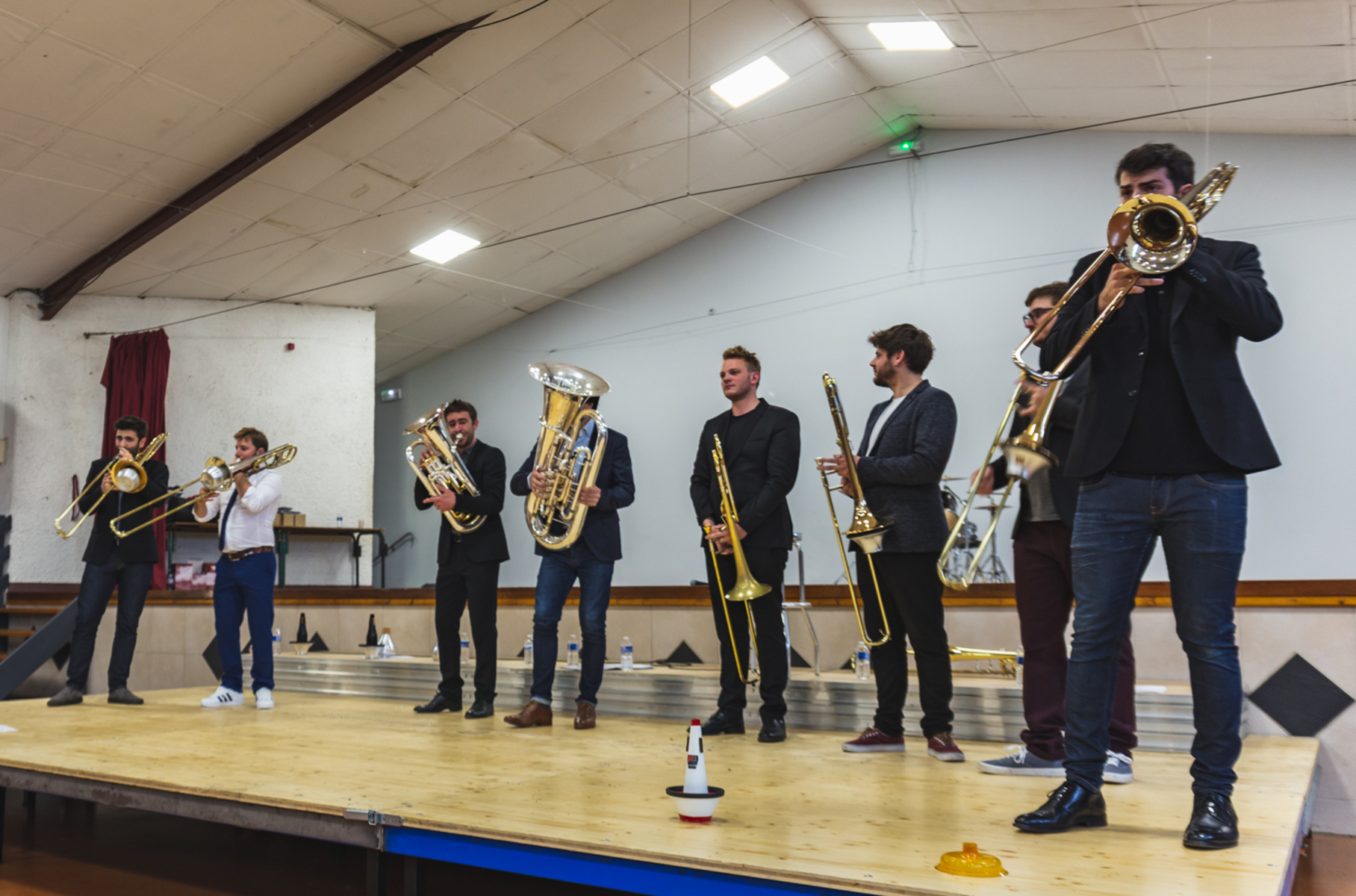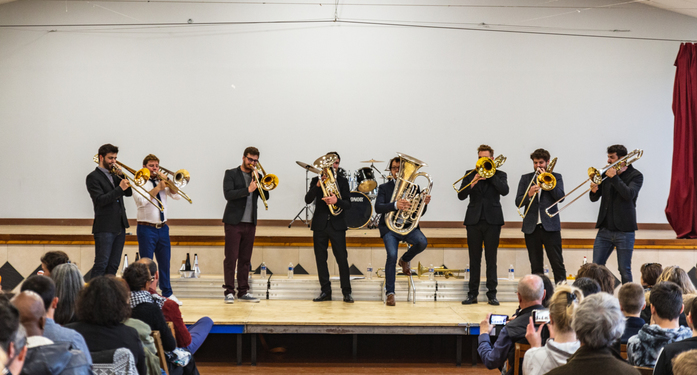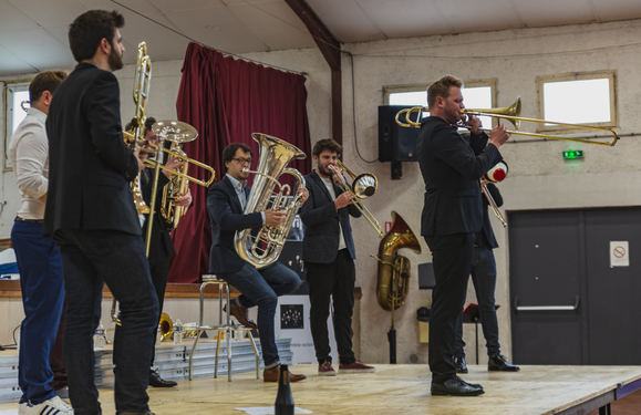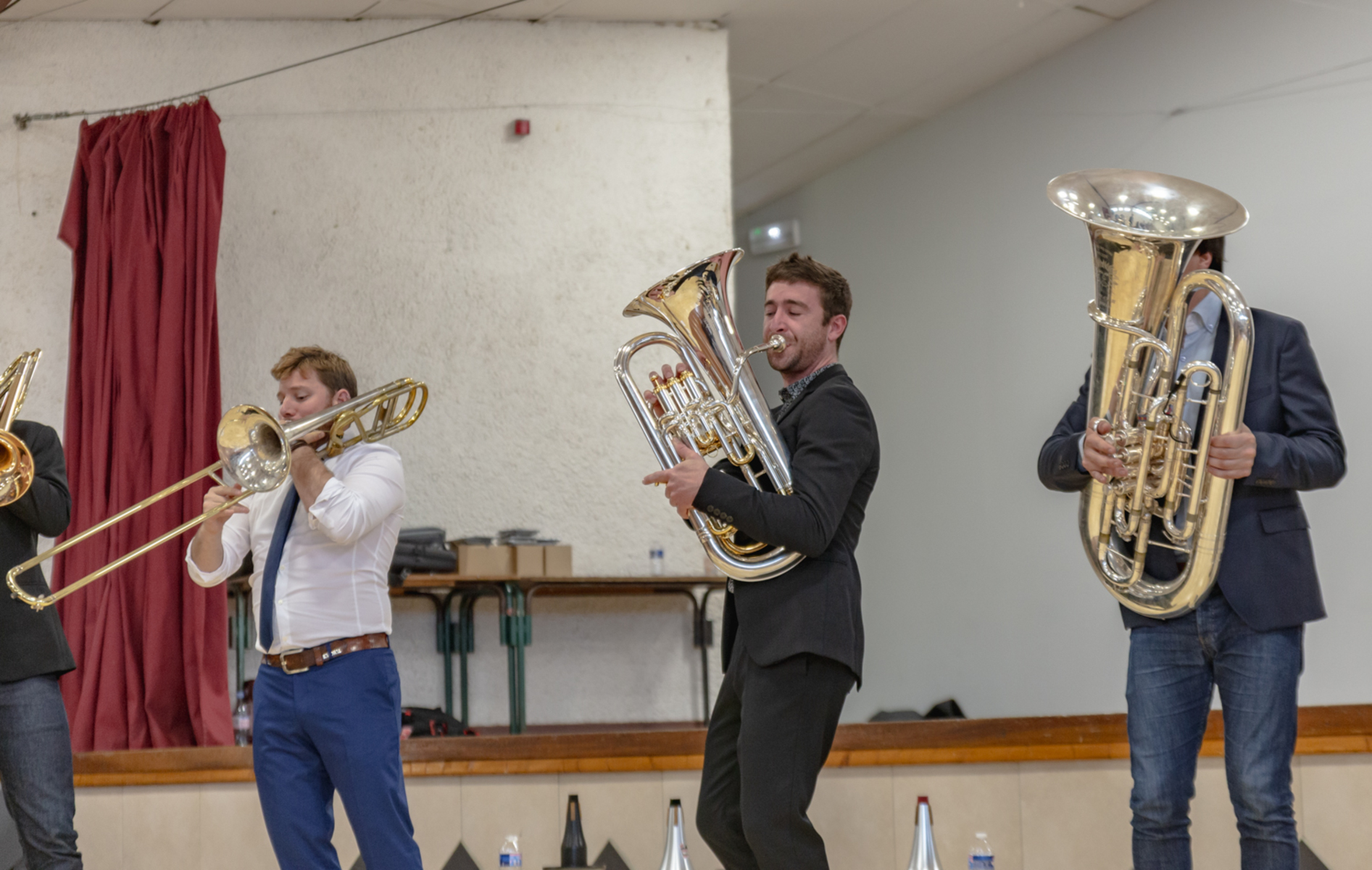 L’association Sud Ouest Trombone a organisé sa 8 ème édition à Orleix du 20 au 22 mai 2019. Pas moins de 60 trombonistes et 15 tubistes se sont réunis tout au long du weekend afin de répéter les morceaux concoctés par les professeurs en vue du concert de fin de stage. Un des moments forts de ce weekend fut le concert de l’ensemble Octotrip et d’Hélène Escriva. Octotrip est un ensemble de trombone et de tuba de 8 musiciens talentueux. Cet ensemble formé par une jeune génération d’interprètes défend un répertoire composé d’arrangements sur mesure et de compositions allant du classique au contemporain tout en passant par le jazz. Leur virtuosité, leur création et le mélange de leur sonorité ont émerveillé les stagiaires et le public venu en nombre. Le final commun entre Octotrip et les stagiaires montre bien que les trombones et les tubas sont bien plus qu’une famille.