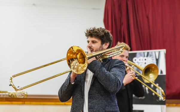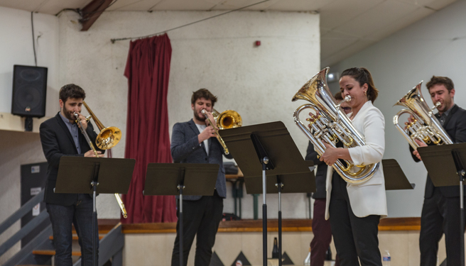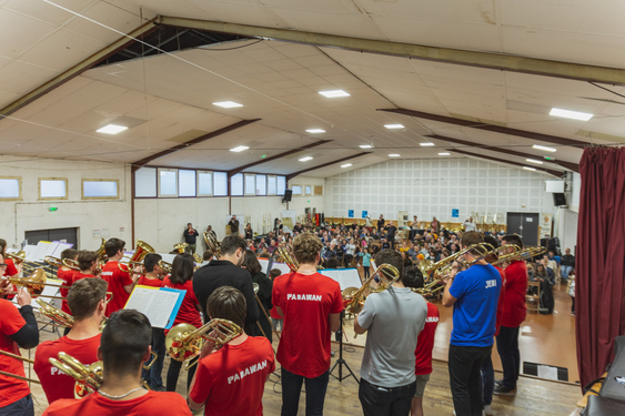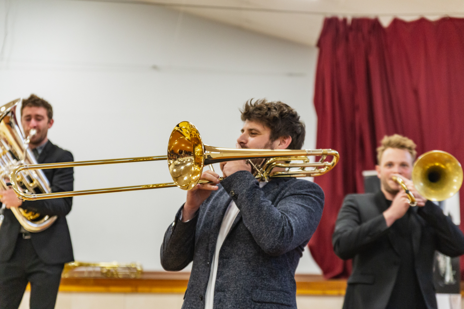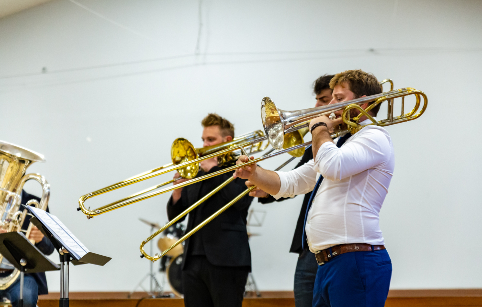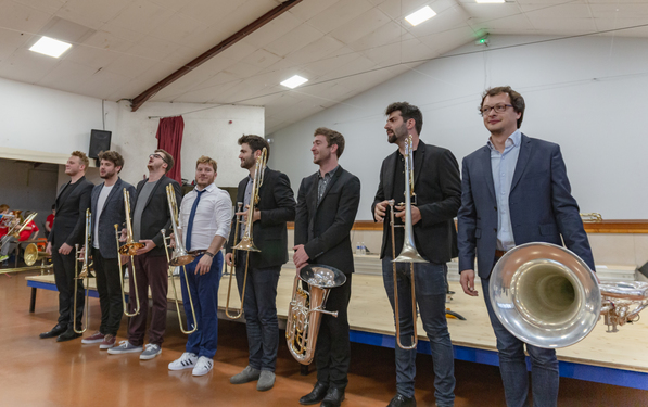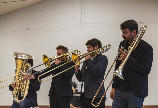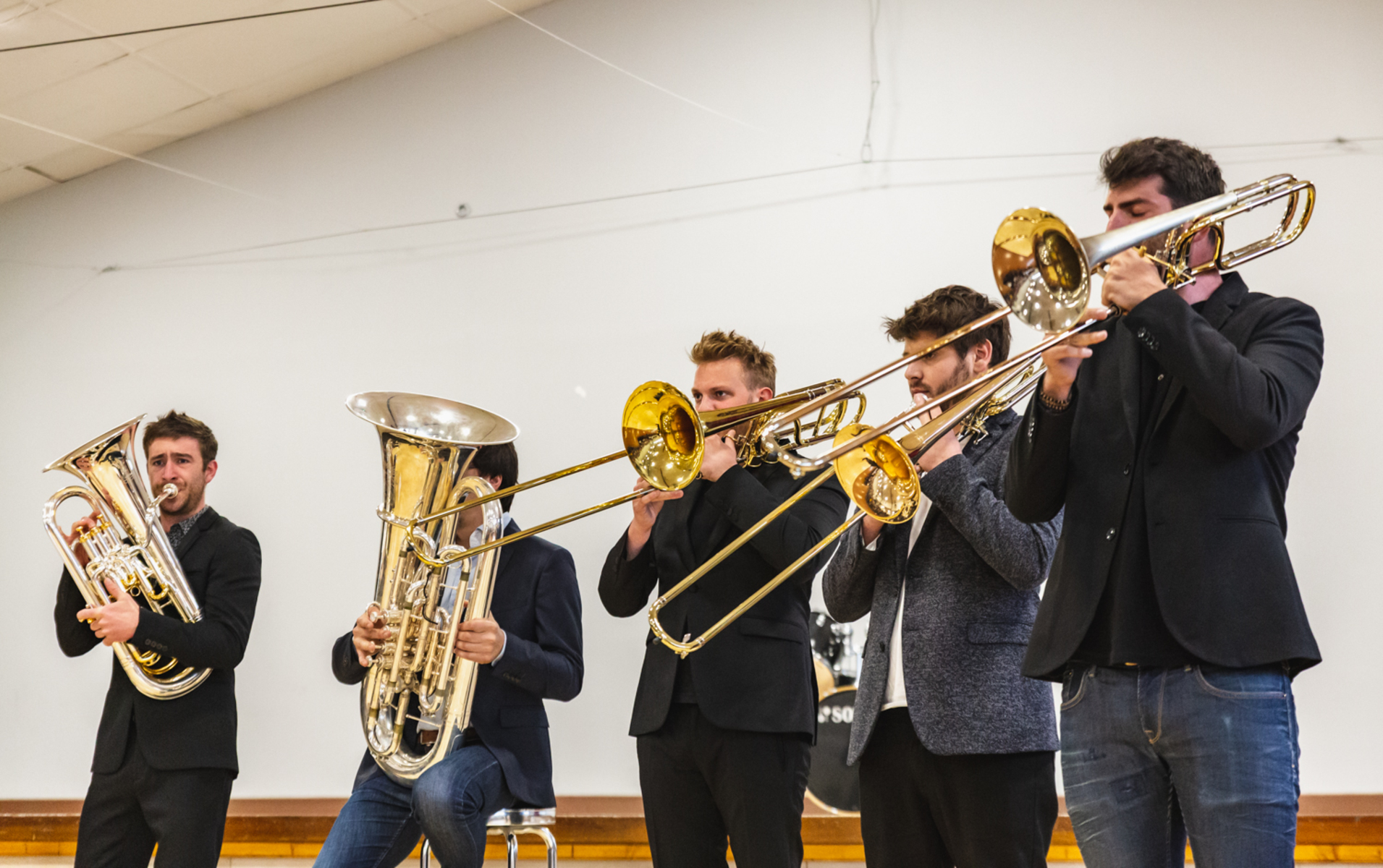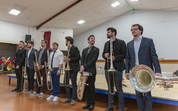 L’association Sud Ouest Trombone a organisé sa 8 ème édition à Orleix du 20 au 22 mai 2019. Pas moins de 60 trombonistes et 15 tubistes se sont réunis tout au long du weekend afin de répéter les morceaux concoctés par les professeurs en vue du concert de fin de stage. Un des moments forts de ce weekend fut le concert de l’ensemble Octotrip et d’Hélène Escriva. Octotrip est un ensemble de trombone et de tuba de 8 musiciens talentueux. Cet ensemble formé par une jeune génération d’interprètes défend un répertoire composé d’arrangements sur mesure et de compositions allant du classique au contemporain tout en passant par le jazz. Leur virtuosité, leur création et le mélange de leur sonorité ont émerveillé les stagiaires et le public venu en nombre. Le final commun entre Octotrip et les stagiaires montre bien que les trombones et les tubas sont bien plus qu’une famille.