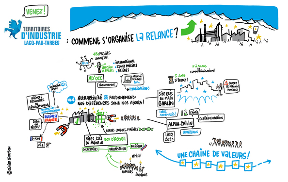 Retour en dessins sur la Journée "Comment s'organise la relance ?" du Territoire d'industrie Lacq-Pau-Tarbes