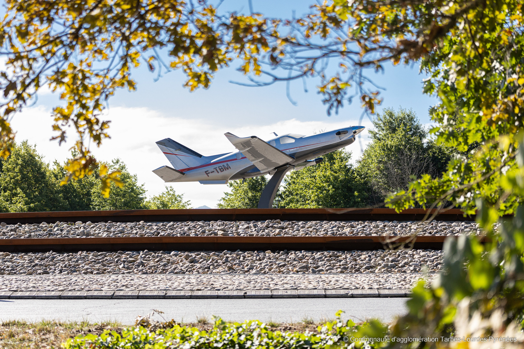La Communauté d’agglomération Tarbes-Lourdes-Pyrénées a mené en 2020 les travaux d’aménagement du giratoire A64 Tarbes ouest, la finalisation de l’anneau central est restée en suspens afin de définir le meilleur choix pour lequel l’aviation s’est rapidement imposée.