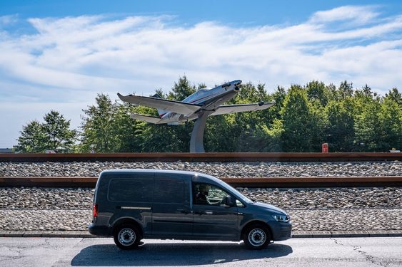 Sur ce plateau central, d’un diamètre de 40 mètres, a été décidée l’implantation d’un avion de type TBM 940, mesurant environ 10 m de long, ayant une envergure de 15 m pour un poids d’environ 1,2 tonne, orienté comme un trait d’union entre les deux bassins de vie du territoire.